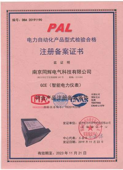 注冊備案證書-電力自動化
